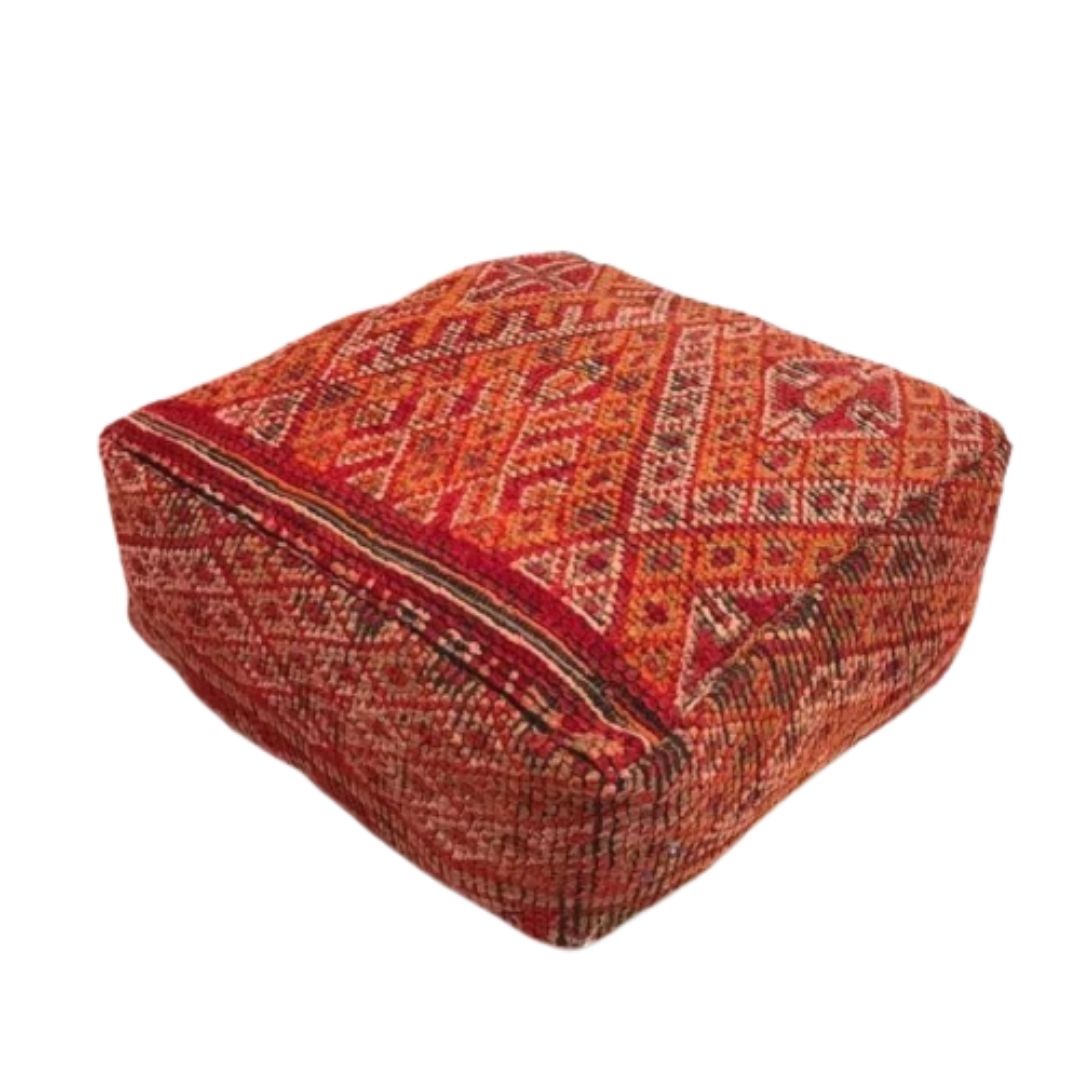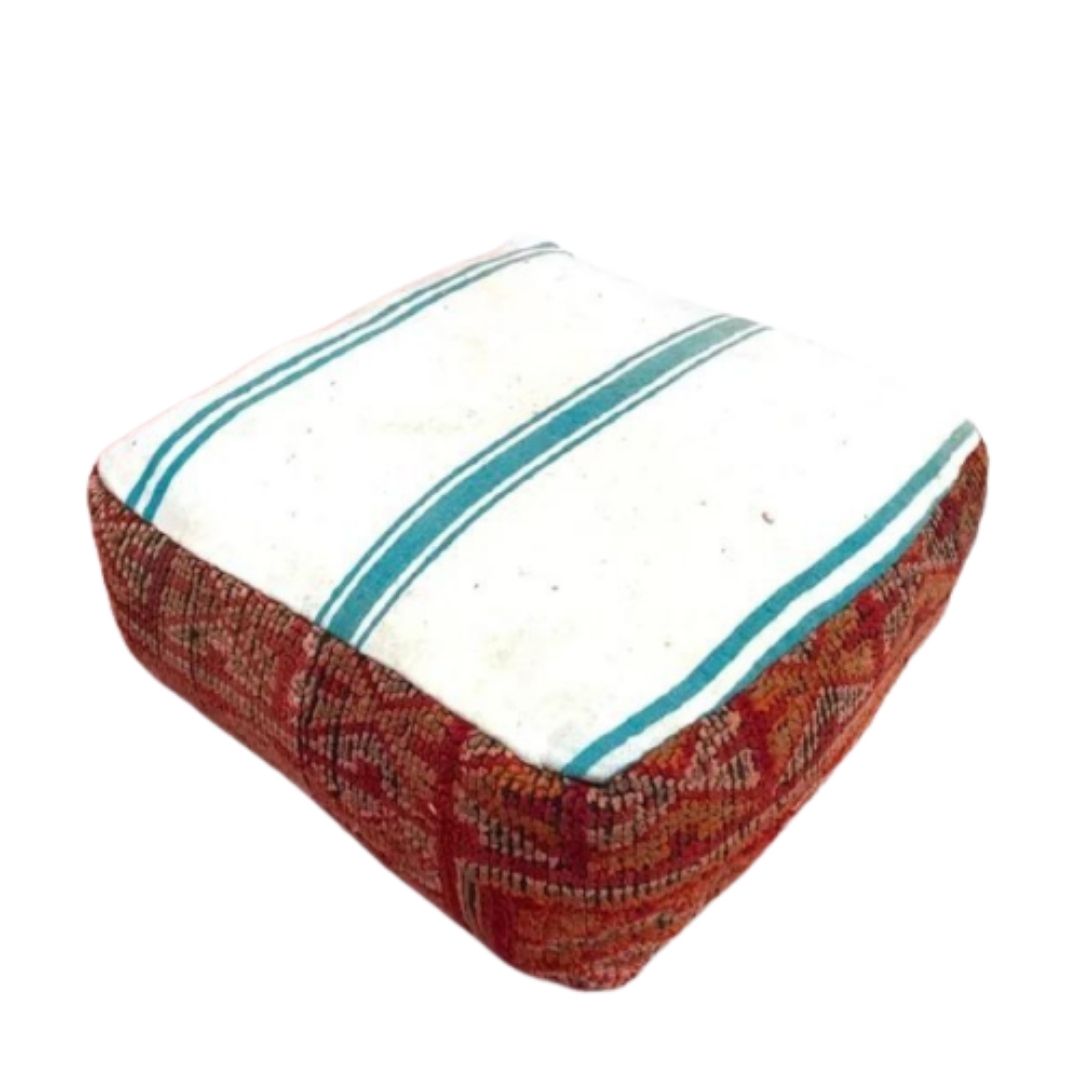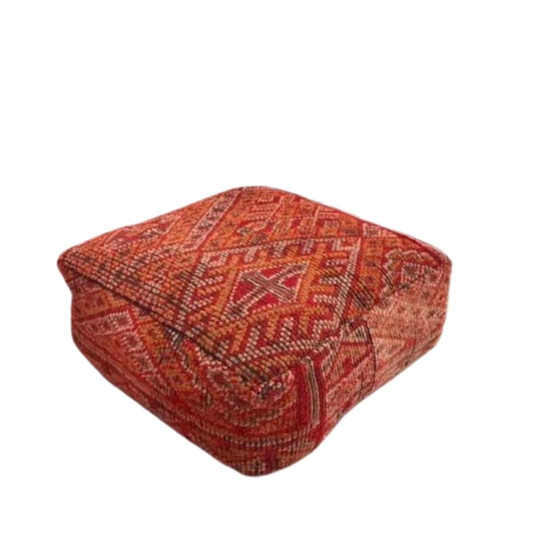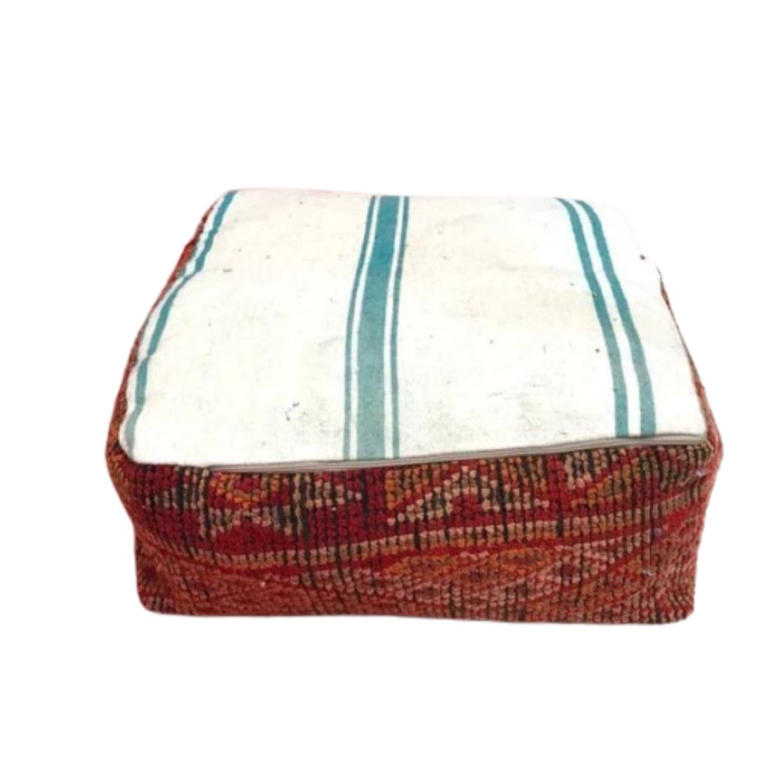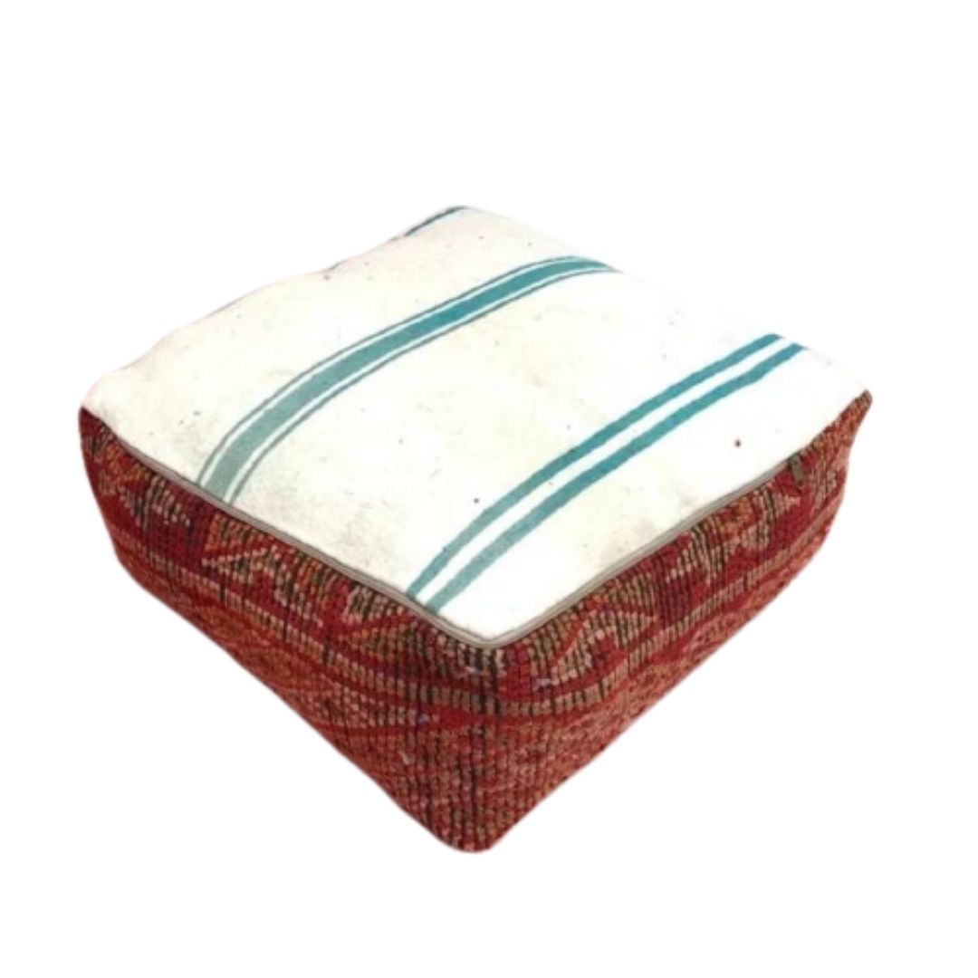 If you crave a unique and distinctive touch to your decor, our Authentic Hand-Knotted Moroccan Kilim Pouff is the perfect choice. Elevate your space with the allure of Moroccan craftsmanship, and relish in the comfort and style it brings to your home. Make a statement and embrace the cultural richness of Morocco with this vintage pouff.