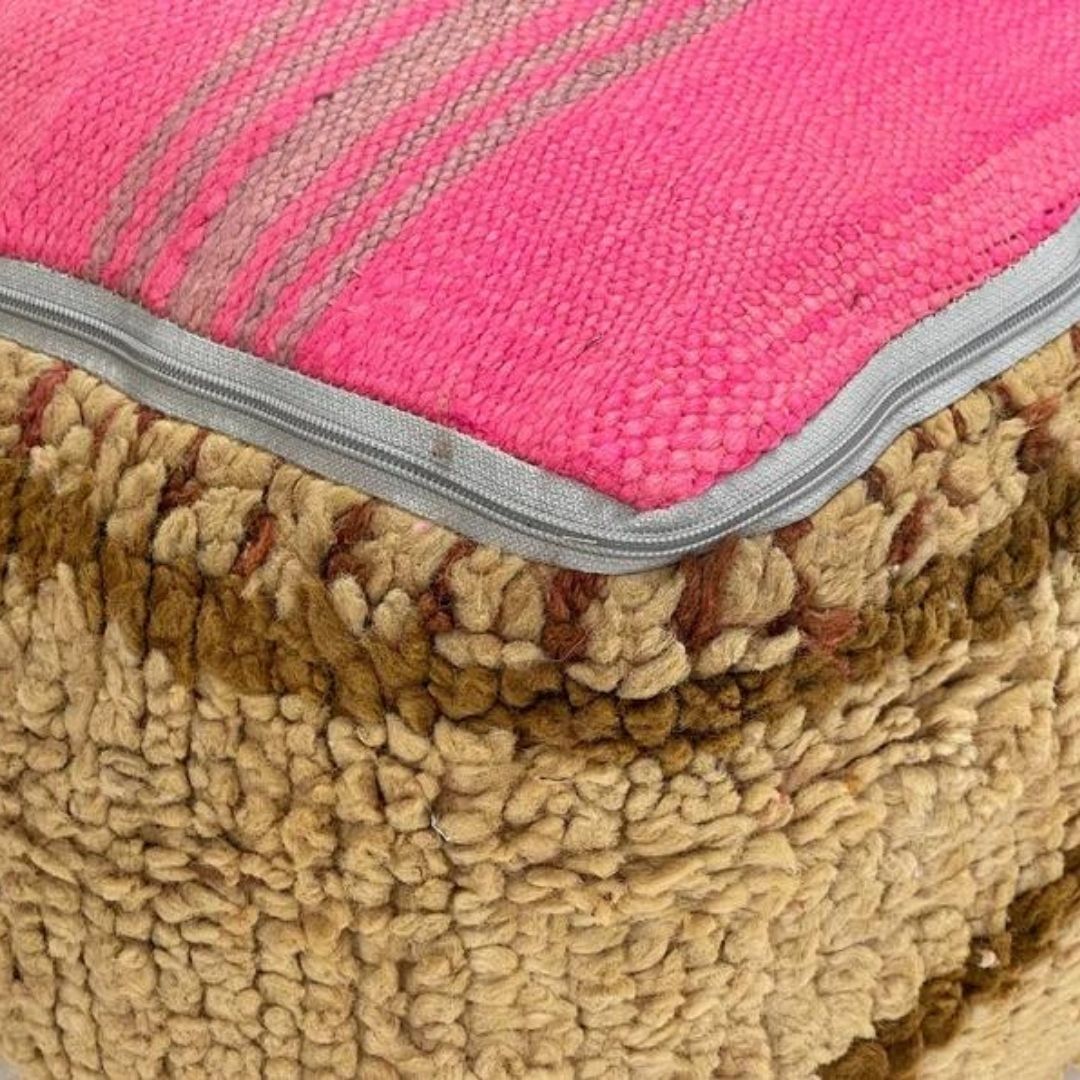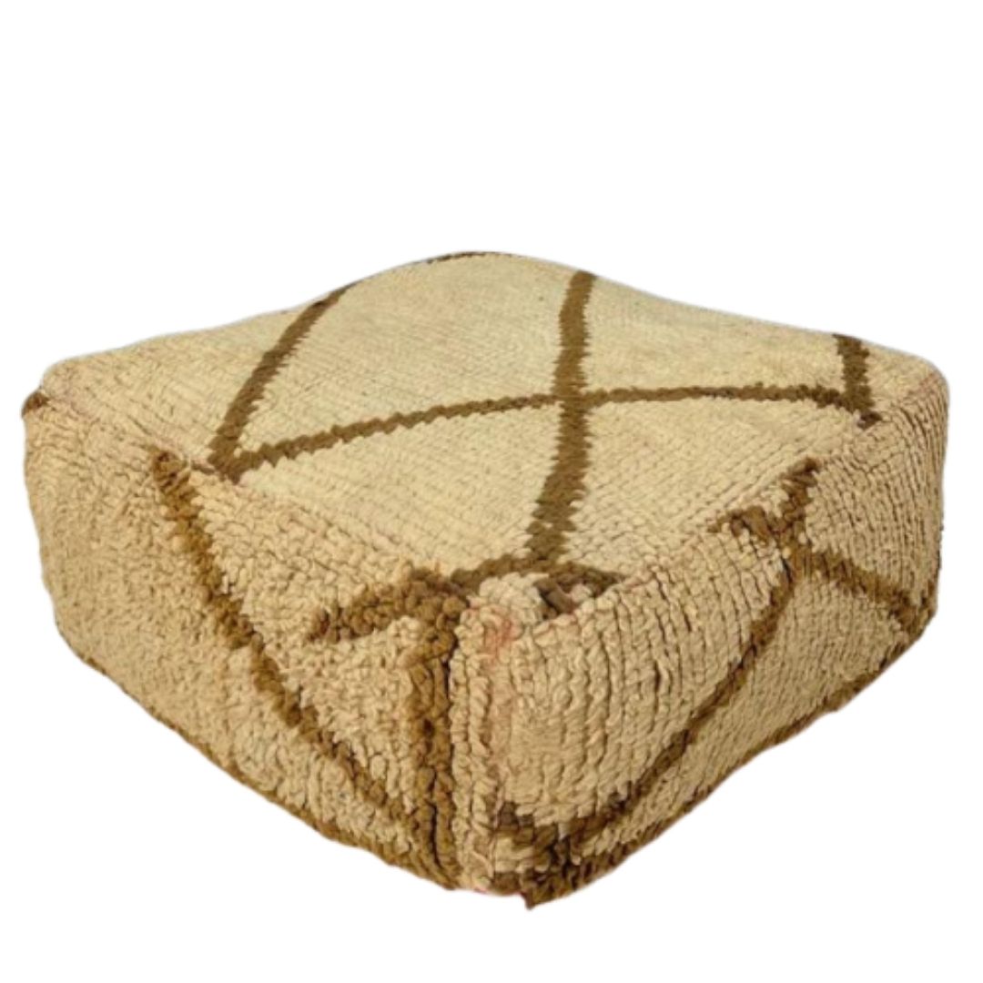 If you crave a unique and distinctive touch to your decor, our Authentic Hand-Knotted Moroccan Kilim Pouff is the perfect choice. Elevate your space with the allure of Moroccan craftsmanship, and relish in the comfort and style it brings to your home. Make a statement and embrace the cultural richness of Morocco with this vintage pouff.
