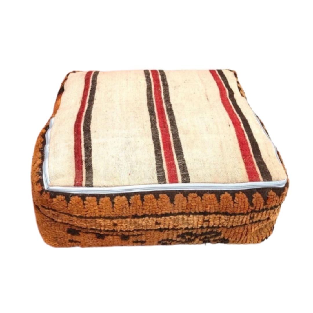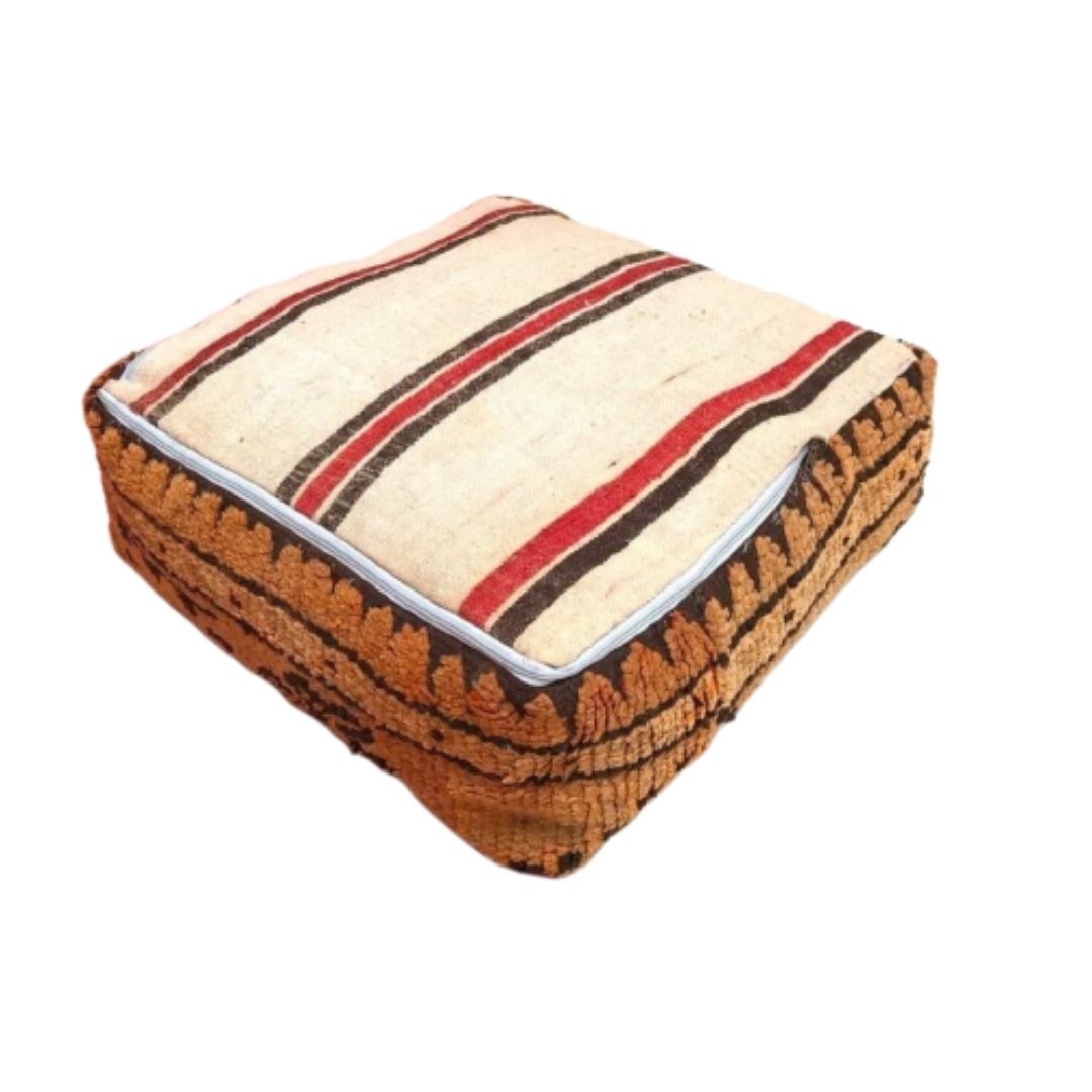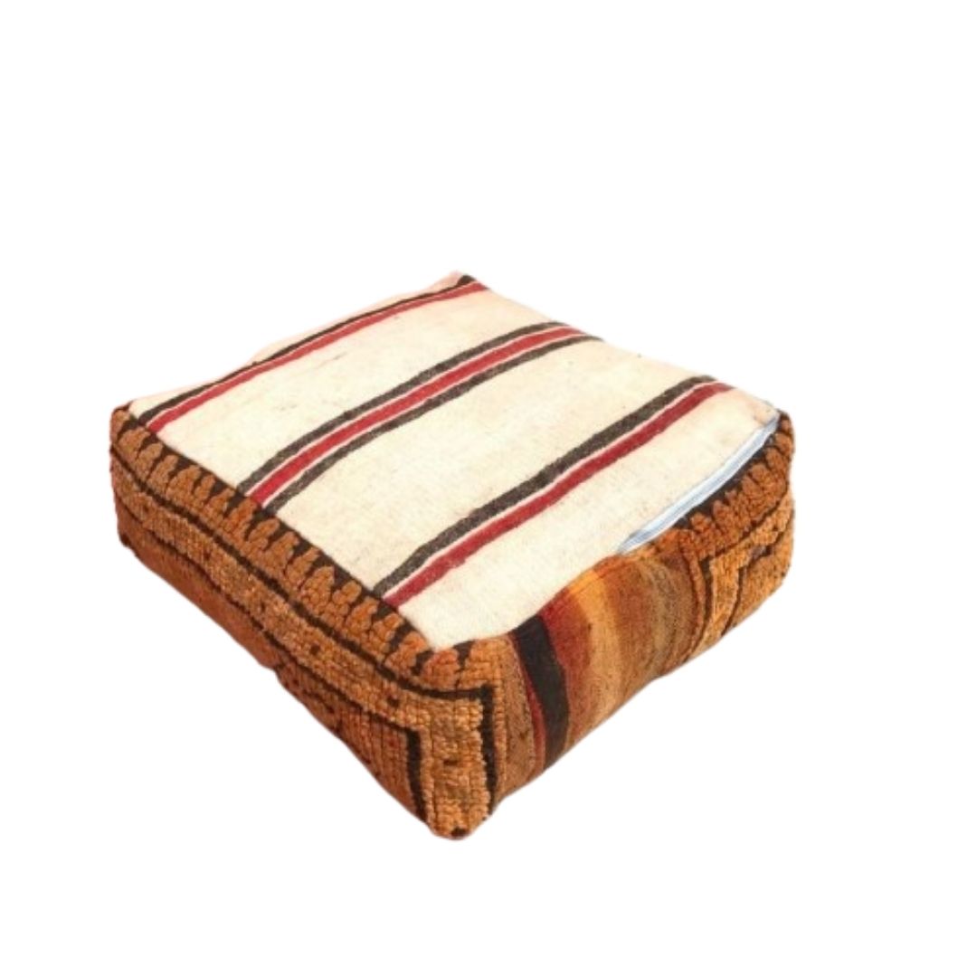 If you crave a unique and distinctive touch to your decor, our Authentic Hand-Knotted Moroccan Kilim Pouff is the perfect choice. Elevate your space with the allure of Moroccan craftsmanship, and relish in the comfort and style it brings to your home. Make a statement and embrace the cultural richness of Morocco with this vintage pouff.