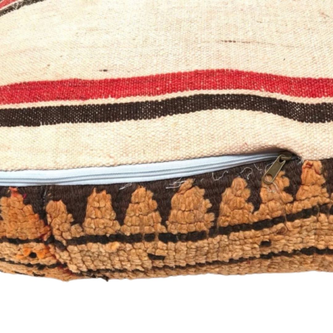 Immerse yourself in the captivating world of Moroccan artistry with our Hand-Knotted Moroccan Wool Kilim Berber Tribal Pouff – a vintage floor pouf that seamlessly marries culture and comfort. Crafted by skilled artisans in Morocco, this pouf is a testament to the exquisite craftsmanship and rich cultural heritage of Morocco.