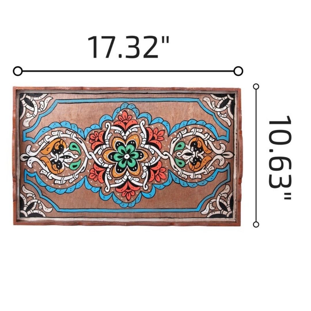Whether used as a valet tray, ottoman tray, or rolling tray set, this versatile piece can elevate the ambiance of your kitchen or living room. The rich colors and traditional patterns will bring brightness and a joyful mood to your home, making it a captivating conversation starter.
