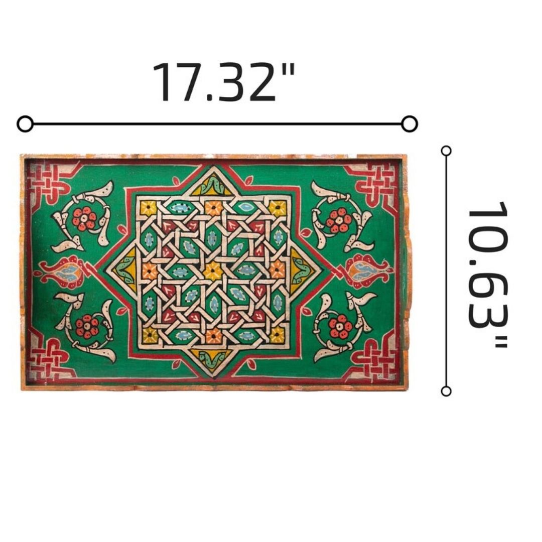 Whether used as a valet tray, ottoman tray, or rolling tray set, this versatile piece can elevate the ambiance of your kitchen or living room. The rich colors and traditional patterns will bring brightness and a joyful mood to your home, making it a captivating conversation starter.