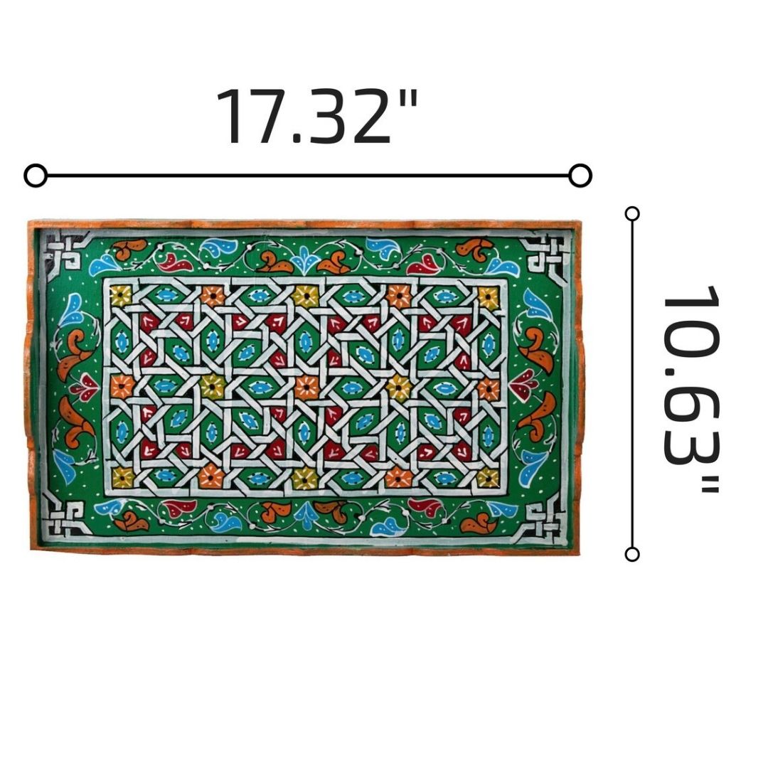 Whether used as a valet tray, ottoman tray, or rolling tray set, this versatile piece can elevate the ambiance of your kitchen or living room. The rich colors and traditional patterns will bring brightness and a joyful mood to your home, making it a captivating conversation starter.