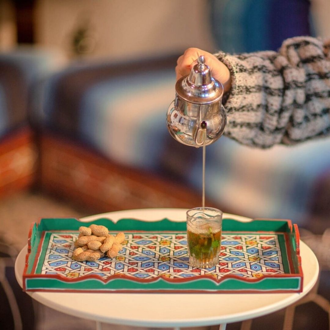 Indulge in the charm of Morocco with our exquisitely handcrafted Wooden Tray, a versatile piece that seamlessly blends functionality and aesthetics. This unique tray, individually made and painted by skilled artisans, embodies the essence of craftsmanship and artistry.