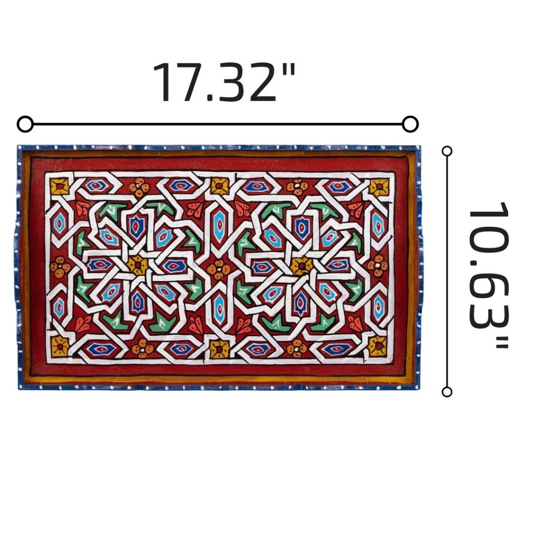 Whether used as a valet tray, ottoman tray, or rolling tray set, this versatile piece can elevate the ambiance of your kitchen or living room. The rich colors and traditional patterns will bring brightness and a joyful mood to your home, making it a captivating conversation starter.