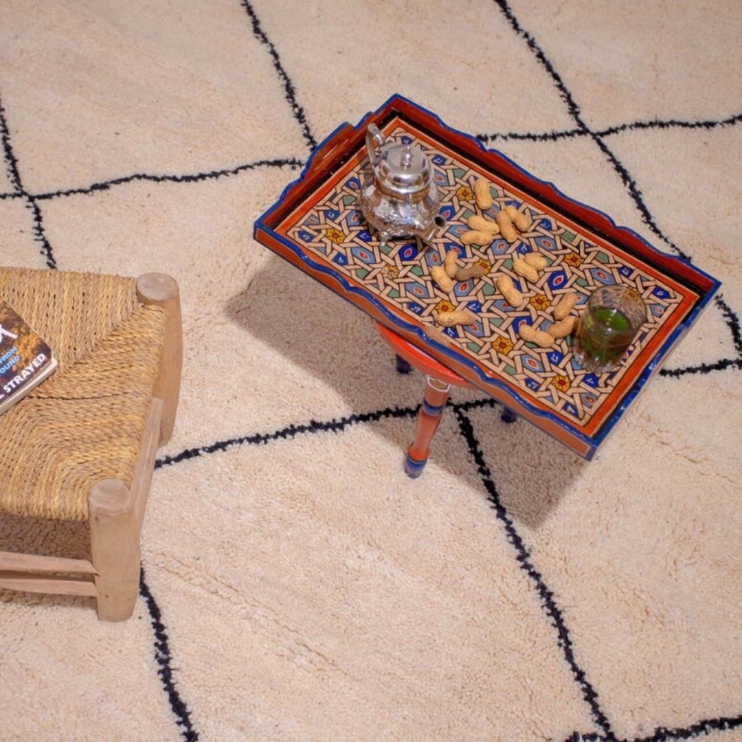 Indulge in the charm of Morocco with our exquisitely handcrafted Wooden Tray, a versatile piece that seamlessly blends functionality and aesthetics. This unique tray, individually made and painted by skilled artisans, embodies the essence of craftsmanship and artistry.