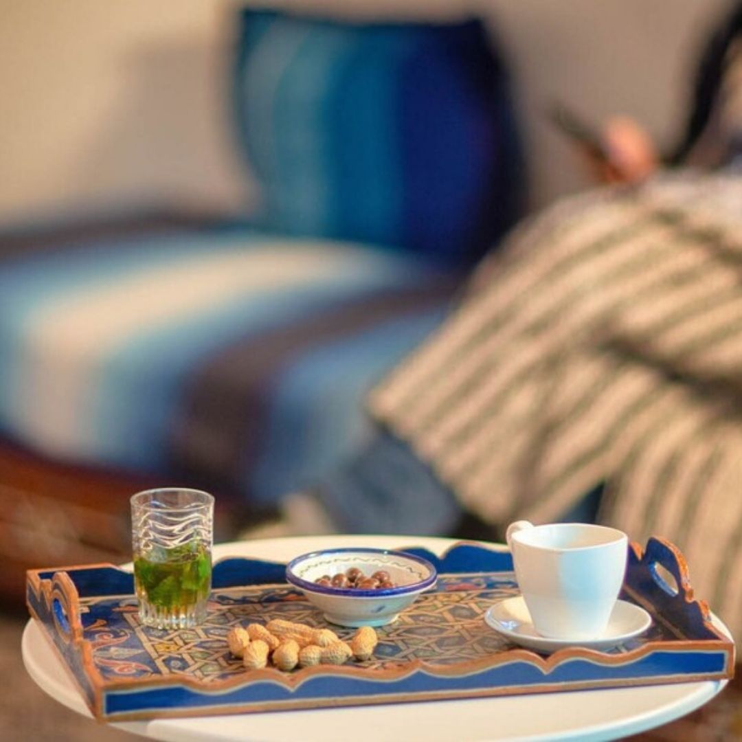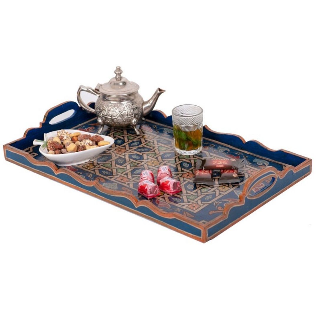 Indulge in the charm of Morocco with our exquisitely handcrafted Wooden Tray, a versatile piece that seamlessly blends functionality and aesthetics. This unique tray, individually made and painted by skilled artisans, embodies the essence of craftsmanship and artistry.