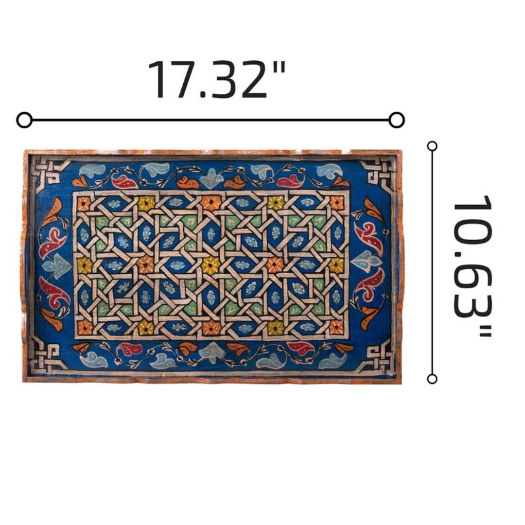 Whether used as a valet tray, ottoman tray, or rolling tray set, this versatile piece can elevate the ambiance of your kitchen or living room. The rich colors and traditional patterns will bring brightness and a joyful mood to your home, making it a captivating conversation starter.