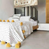 Crafted from 100% cotton on traditional wooden looms, our blankets offer a warm and cozy embrace, perfect for adding a hint of Moroccan charm to your bedroom as a luxurious bedcover or draping elegantly over your favorite sofa. The delicate pompoms adorning two sides add a playful touch that enhances the overall appeal.